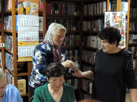 К этой встрече членами клуба было подготовлено веселое костюмированное поздравление. Активистка клуба Светлана Дегтярёва прочла трогательные поздравительные стихи собственного сочинения, а Людмила Ким подарила каждому участнику клуба небольшие иконки с изображением святых Петра и Февронии.