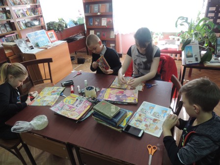Ребята клуба «Чудо-руки, чудо-штуки» собрались, чтобы принять участие в важном деле для библиотеки - ремонте книг.