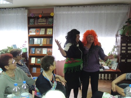 Затем активисты клуба преподнесли гостям «Театральный сюрприз», представив небольшие сценические выступления. Также ведущая пригласила участников клуба изобразить тот или иной литературный персонаж, гости хоть и смущались немного, но передавали ярко и образно характер героев, вызывая бесконечные улыбки и восхищение. В творческом процессе были задействованы не только выступающие, но и зрители.