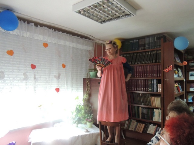 В начале вечера ведущая поздравила присутствующих с участием во Всероссийской акции, рассказала историю возникновения «Библионочи» в России. Затем работники библиотеки совместно с членами клуба «В кругу друзей» показали театрализованный отрывок из пьесы Владимира Гуркина «Любовь и голуби».