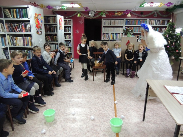 Вначале утренника был проведен конкурс «Здравствуй, Зимушка Зима» на лучшее чтение стихов о зиме. Оценивала конкурс гостья библиотеки - Зима. Она подарила призы ребятам, которые заняли первое, второе и третье место за чтение стихов. Затем Зима предложила детям поучаствовать в зимней викторине и поиграть в ее любимую игру «Снежки». Поиграв, Зиме стало жарко, и она ушла, пообещав прислать Снегурочку.