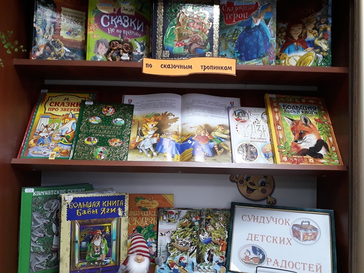 По сказочным тропинкам ведёт ежедневно маленьких читателей библиотеки №5 книжная выставка-загадка "Сундучок детских радостей", позволяя ребятам самостоятельно выстраивать путь по страницам книг при помощи ответов на загадки и решения головоломок.