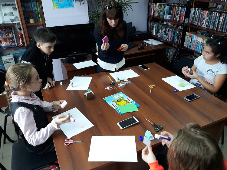 Не раз ребята, занимающиеся в кружке библиотеки №5 "Учусь быть читателем" приходили к выводу, что дело это совсем не лёгкое - быть настоящим читателем, умеющим работать с книгой. А на очередном занятии кружка убедились ещё и в том, что книгоиздателем-полиграфистом быть ещё сложнее. Мастер-класс по созданию книги своими руками для ребят средней группы кружка провела педагог дополнительного образования "Центра творческого развития и гуманитарного образования" Петропавловск-Камчатского городского округа Александра Юрьевна Белозёрова - человек творческий и талантливый - с которым библиотека №5 сотрудничает в течение двух лет.