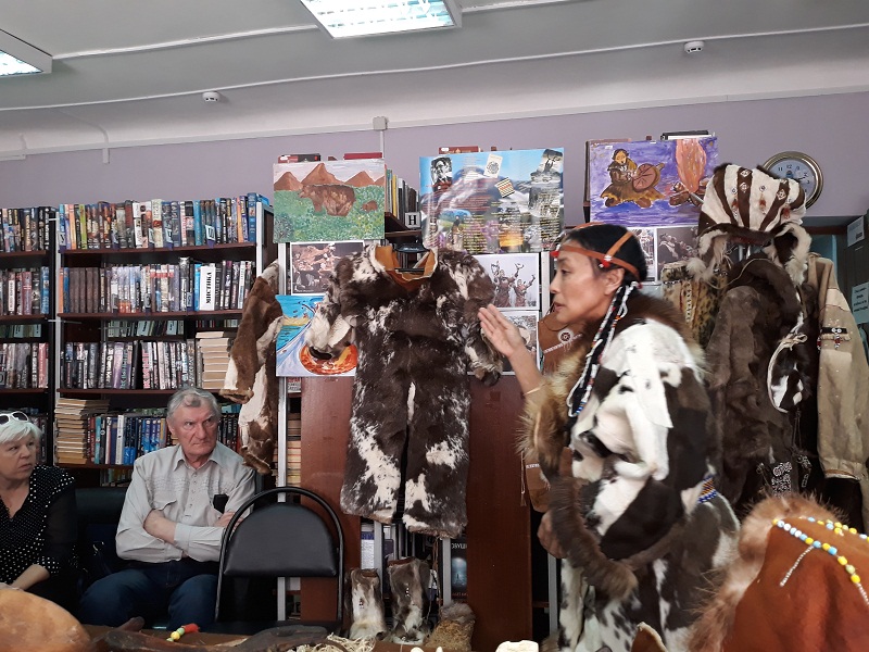 Руководитель ансамбля Лилия Александровна Аслапова - большой друг и соратник библиотеки №5 в краеведческой работе, увлекла участников вечера рассказом о жизни людей, связанных с разведением оленей, познакомила с их традициями и представлениями о мире. Экспозиция предметов быта северян позволила многим воочию увидеть, как богата культура народов, населяющих Камчатский полуостров, а проведение мастер-классов по выделке шкур дало представление о крайне тяжёлом и уникальном труде камчатских мастериц.