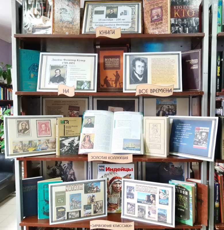 Для читателей библиотеки №5 был подготовлен и проведен обзор книг у книжной выставки "Книги на все времена" из цикла "Золотая классика зарубежной литературы" о Фениморе Купере. Творчество писателя интересно как детям, так и взрослым. Читатели старшего возраста с удовольствием вспомнили приключенческие романы об индейцах, а молодое поколение познакомилось с удивительными произведениями Ф. Купера. Романы Джеймса Фенимора Купера и по сей день не теряют актуальности, ведь в них рассказывается о самых главных человеческих ценностях - это дружба, свобода, благородство и любовь. Книги продолжают учить чести, мужеству, верности.