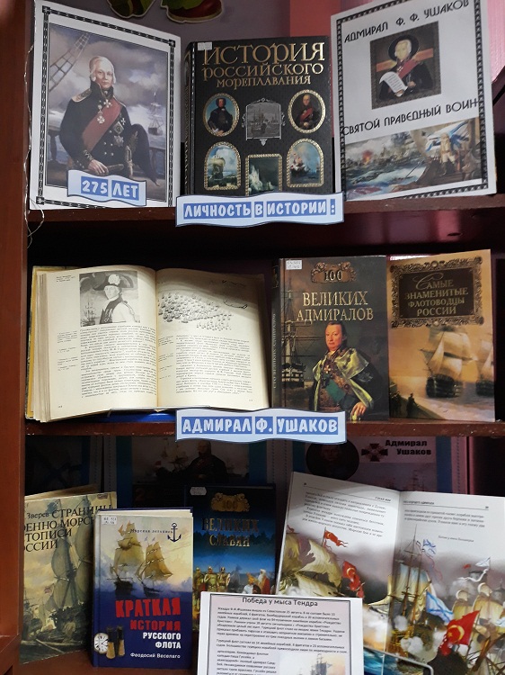 Очередное путешествие в героическое прошлое нашей Родины совершили учащиеся школы №12 на экскурсии по книжным выставкам библиотеки №5, посвящённым наступающему Дню защитника Отечества: книжно-предметной выставке "Оружие Победы", книжной выставке-портрету "Личность в истории: адмирал Фёдор Ушаков", информационному стенду "На защите Отечества". Благодаря иллюстрациям и предметам, представленным на выставках, ребята более подробно познакомились с героическими событиями военной истории России, биографиями легендарных флотоводцев и полководцев, особенностями создания русского оружия, правилами призыва на военную службу в ряды Красной, а затем Советской и Российской Армии. Будущие призывники получили полное представление о современных правилах призыва на срочную и контрактную службу в ряды Вооружённых сил Российской Федерации.