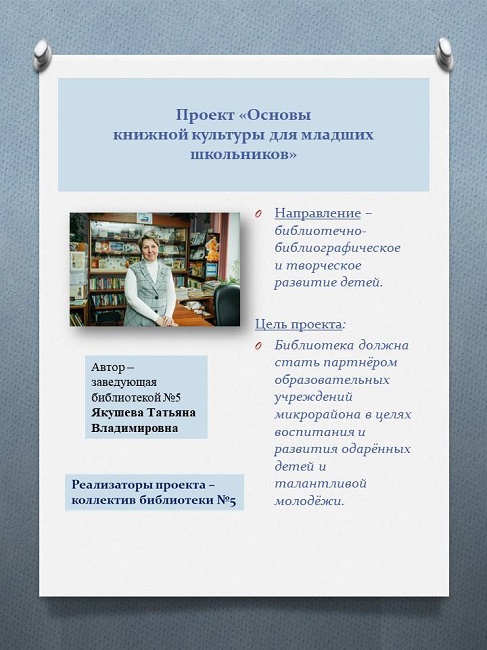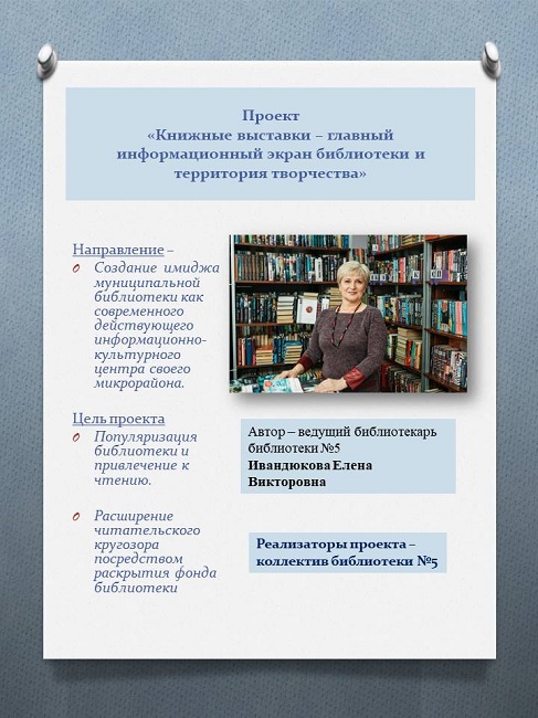 За более чем 15 лет коллектив библиотеки №5 неоднократно убедился, что проектное планирование даёт возможность расширять круг своей деятельности, укреплять авторитет культурного учреждения и повышать спрос на его услуги, а также – повышать уровень профессионального мастерства.