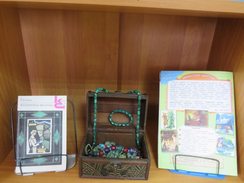 15 января 2019 года исполнилось 140 лет со дня рождения уральского сказителя Павла Петровича Бажова. Этому событию была посвящена книжно-предметная выставка, проходившая в читальном зале библиотеки № 8 с 21 по 30 января. Экспонатами выставки, кроме портрета, краткой биографии писателя и книги Евгения Пермяка «Долговекий мастер» о жизни и творчестве Бажова, стали так же сборники его произведений: «Ключ земли», «Хрупкая веточка», «Малахитовая шкатулка» и сказы, выпущенные отдельными книгами. Изюминкой выставки, вызвавшей большой интерес юных посетителей библиотеки, стали уральские полудрагоценные и поделочные камни, а так же шкатулка с украшениями из настоящего малахита и других камней.