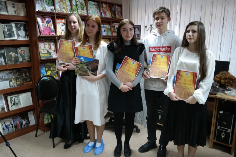 Коллектив библиотеки № 8 вместе со своими гостями принял участие во всероссийской акции «Библионочь-2019», посвященной году театра в России. Вечер начался встречей с юными участниками театральной студии «Преодоление», осваивающими актерское мастерство под руководством актрисы Камчатского театра драмы и комедии Светланы Дударевой, которая представила зрителям своих воспитанников: Шептур Валерию, Утегенову Эмилию, Паршину Альбину, Двинских Дарью и Задорожного Сергея. В исполнении будущих артистов прозвучали отрывки из произведений Тэффи, Бродского и других авторов.