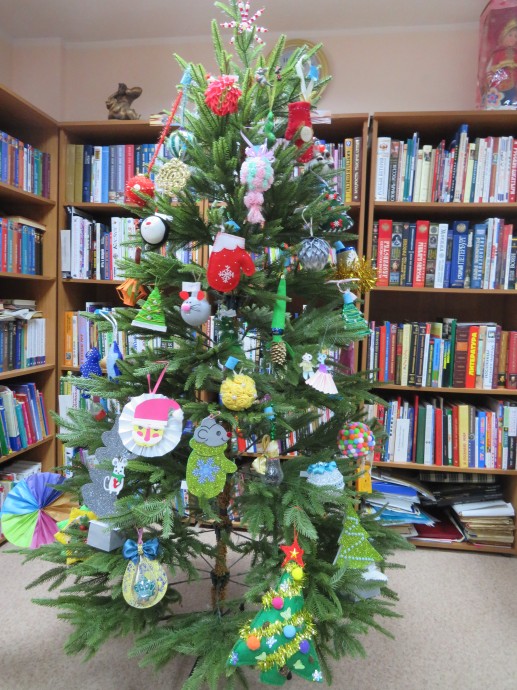 Такой необыкновенной елки у нас не было никогда. Е` можно увидеть в читальном зале библиотеки до 31 декабря. После новогодних праздников все участники творческой мастерской получат подарки от нашей библиотеки.
