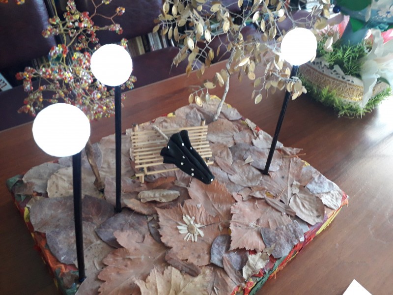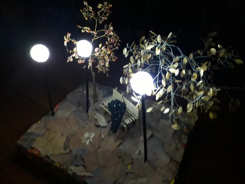 Как хочется отдохнуть в осеннем парке, тонко пронизанным французским шармом, под светящимися фонарями и развесистыми деревьями из бисера и золотых пайеток!