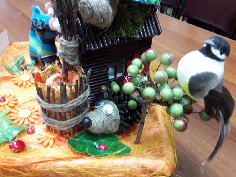 Что за прелесть эти сказки! Гламурная красавица Баба-Яга расскажет вам истории «Там на неведомых дорожках». Тонкая работа изготовления избушки, котейки из фетра, ежа из семечек. От всей работы прямо исходит запах золотой осени и солнечных зайчиков.
