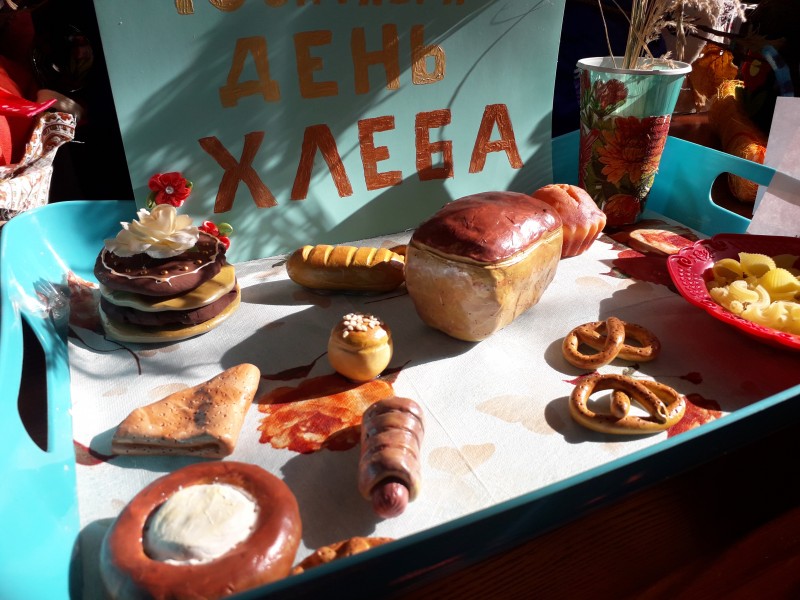 Кажется только из печи хлеб, булочки, кексы, аппетитные пирожные, колоски пшеницы ко Дню хлеба, который отмечается 16 октября. Никогда не скажешь, что все эти изделия сделаны ни дизайнером, а рукодельницей мамой и дочкой без использования специальных технологий, а из пластилина, акриловых красок с добавлением макарон, кунжута и фантазии.