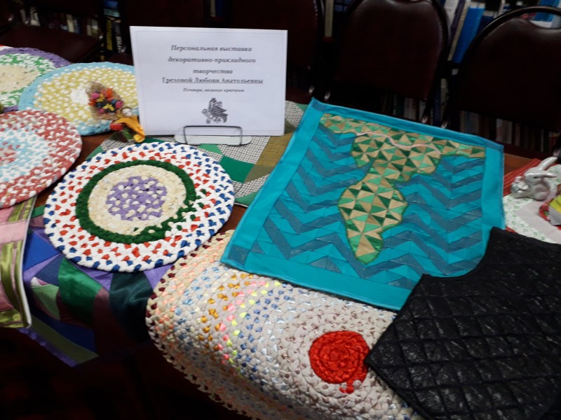 В Дни славянской письменности и культуры в библиотеке №9 экспонировалась персональная выставка работ прикладного творчества Греховой Любови Анатольевны - нашей читательницы и мастерицы. Уникальные работы в технике лоскутное шитьё или на современном языке пэчворк, поделки из соломки, вязанные крючком изделия, стёганые жилеты, расшитые подушки оставили тёплые, яркие впечатления у каждого. Выставка погружала в атмосферу нашего культурного прошлого. Казалось где-то рядом уютный домик, где в русской печи томится ароматная утка, а на столе с белоснежной скатертью ждут гостей румяные пироги. Посетители библиотеки могли насладиться красотой нашей выставки и прикоснуться к самобытному славянскому искусству.