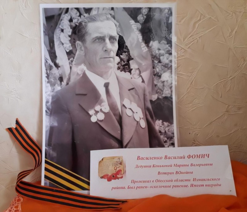 Василенко Василий Фомич - дедушка Коньковой Марины Валерьевны. Прошёл всю войну, умер в мирное время от осколочного ранения, имеет награды.