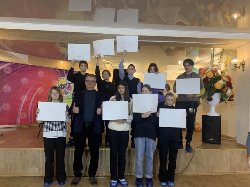 В течение урока, который длился всего 45 минут, каждая из трёх групп на отдельных площадках обучилась азам искусств. Триумфальный успех абсолютно всех участников мы увидели, когда снова собрались в актовом зале. Возможно, впервые выйдя на сцену, участники проекта продемонстрировали свои умения, полученные на занятиях творческой студии «АРТ-Микс».