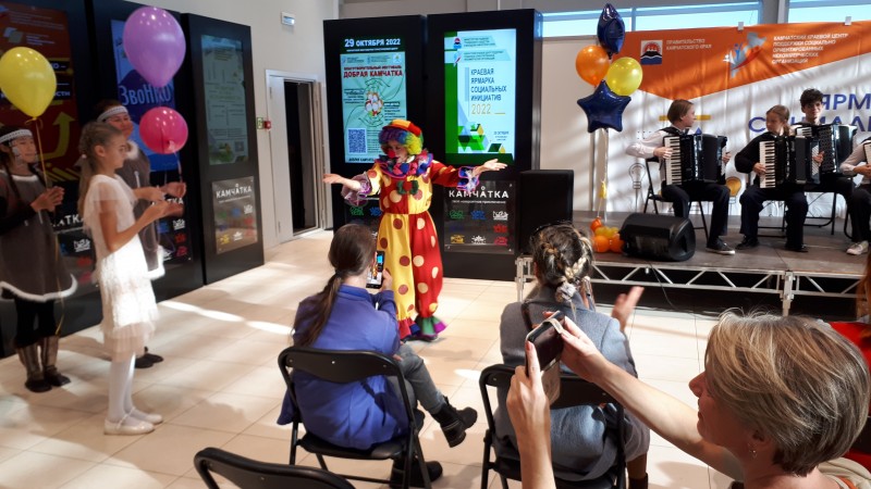 Ещё одно значимое мероприятие прошло 29 октября в Камчатском выставочно - туристическом центре, где состоялась ярмарка социальных инициатив. В этом году ярмарка собрала 34 организации-участника из 6 муниципальных районов, которые представили 42 проекта, 17 из них поддержано министерством развития гражданского общества и молодёжи. Камчатского края, 9 – Фондом Президентских грантов и 2 Президентским Фондом культурных инициатив. В рамках этого мероприятия состоялись мастер-классы, как для детей, так и для взрослых. Студия детского творчества «Арт-Микс» с ее мастер-классом, артистичным выступлением ансамбля «Тутти», ярким творческим акцентом выделялась из всех участников.