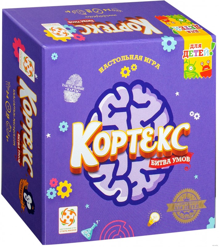 Можете отличить ракушку от клубники на ощупь? А помочь коту догнать мышь и не заплутать в лабиринте? Детская версия игры Кортекс: Битва умов – это 8 типов карт-заданий, которые тренируют память, внимательность, скорость реакции и мышления, навыки устного счёта, координацию, а также сенсорное восприятие с помощью специальных тактильных карт.