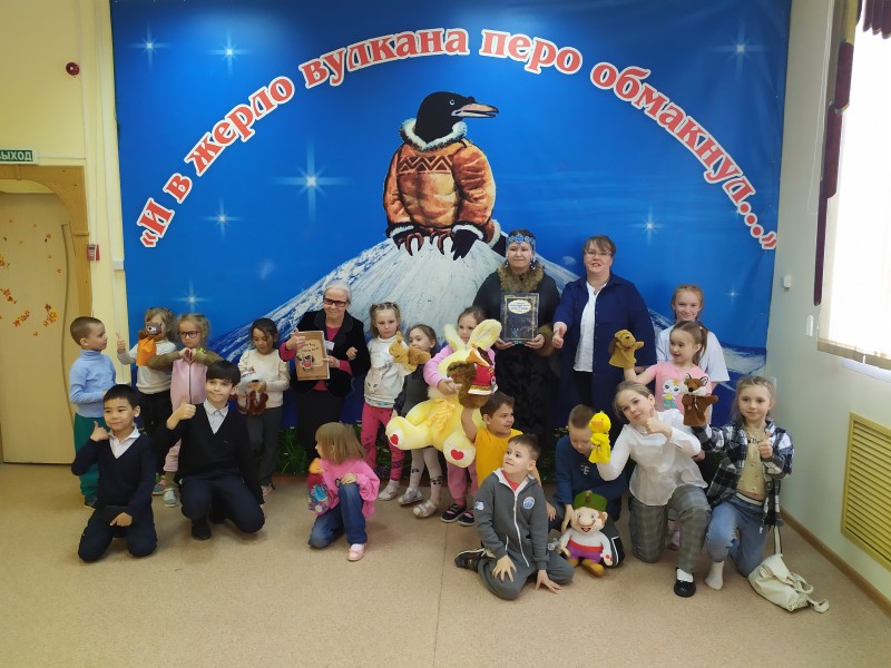 После перерыва чтения продолжились открытыми мероприятиями, которые провели специалисты Центральной детской библиотеки им. Поротова для юных читателей. Ольга Михайловна Беркевич, заведующая библиотекой и Дарья Васильевна Архипова, заведующий детским отделом показали спектакль-импровизацию песни «Утки» и интерактивное кукольное представление «Ворон Кутх – творец Камчатки».