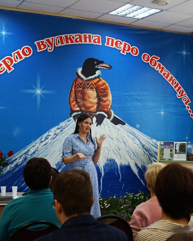 Поделиться опытом педагогической и методической деятельности по продвижению родной литературы в образовательном учреждении пригласили Оксану Викторовну Пресман - воспитателя высшей категории детского сада № 42, Надежду Александровну Закревскую - учителя русского языка и литературы средней школы № 26, которая рассказала о своем, авторском, подходе к погружению школьников в творчество камчатских писателей и поэтов.