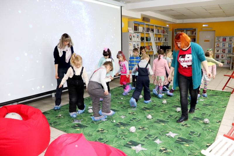 Информационно-библиотечный центр «Доступный город» 15 апреля встречал маленьких гостей из детского сада №58. Ребята в первый раз пришли в библиотеку, поэтому каждая полка с яркими и красочными детскими книгами захватывала их внимание. Пусть на улице моросит весенний дождик, а у нас в библиотеке – свой космос. Подготовив ракету и скафандры, мы отправились в космическое путешествие к дальним планетам. Юные космонавты облетели, как Юрий Гагарин, вокруг Земли, посмотрели на нее в иллюминатор, наблюдая как она удаляется все дальше и дальше, и продолжили свой путь в космическом пространстве. Иногда мы делали остановки, чтобы пропустить пролетающие мимо астероиды. А еще мы собирали звезды.