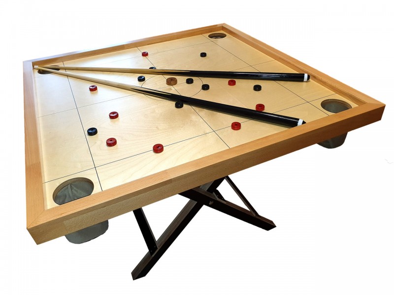 Главное отличие новуса от обычного бильярда — компактность: небольшой стол для игры не требует много места, вместо шаров – деревянные пешки красного и черного цвета, вместо битка – шайба.