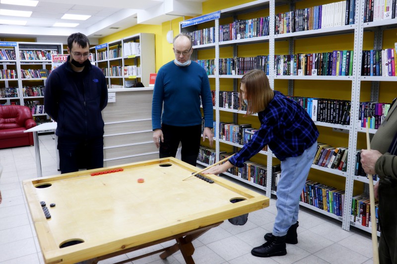 А правила? Правила игры в новус сразу не запомнить. Они отличаются от бильярдных правил. Читатели, которые пришли к нам в информационно-библиотечный центр "Доступный город", познакомились с ними уже в процессе самой игры. За непринужденной беседой и с кием в руках о правилах рассказал и показал их применение на практике Андрис Кокаревичс, популяризатор новуса на Камчатке, который играет в эту игру с 10 лет.