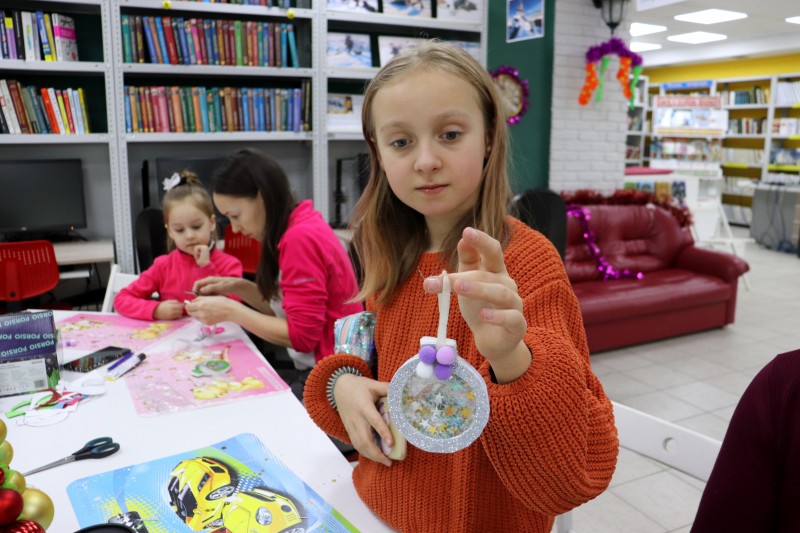 В окружении книг и новогоднего оформления, в уютной компании прошел мастер-класс по созданию новогодней игрушки. И делали мы не просто игрушку, а игрушку-шейкер из фоамирама, внутри которой приятно зашуршал искусственный снег и засверкали праздничные звезды.