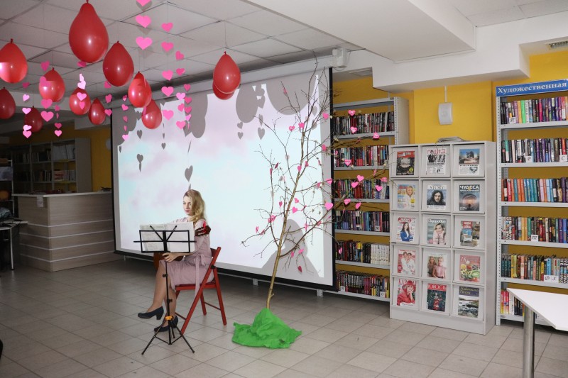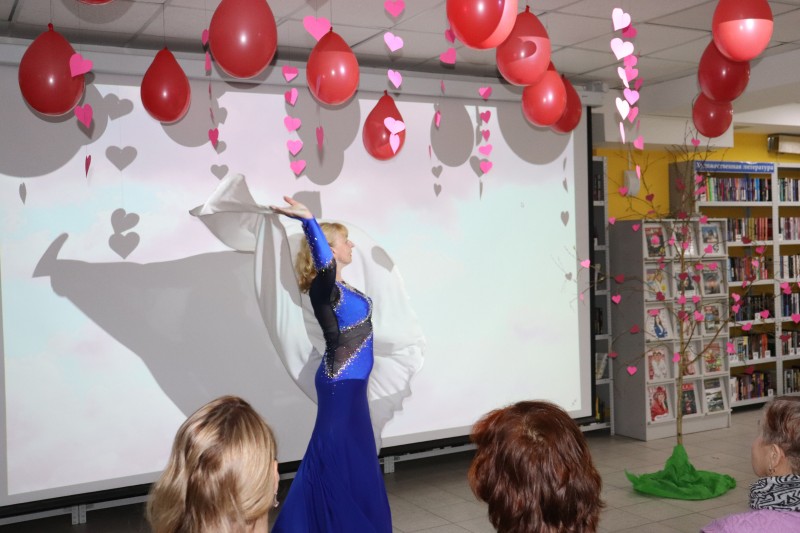 В тематически оформленном зале центра весь вечер звучали стихи, басни, проза и песни про любовь, как в исполнении давних друзей библиотеки членов Литературно-музыкального объединения «Полуостров вдохновения», Ольги Корольковой, так и гостей, которые были у нас первый раз - это дуэт «Еще не вечер» и танцовщица Ольга Яворская.