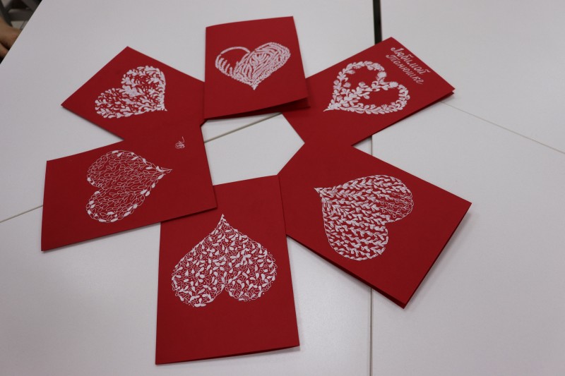 В ходе мастер-класса Ольга объяснила присутствующем, что для освоения техники зентангл не требуется особых талантов. Главная задача – получить удовольствие и у всех все получится. И действительно у всех все получилось. Все создали уникальные, неповторимые открытки, которые можно будет подарить на День святого Валентина человеку любого пола и возраста.