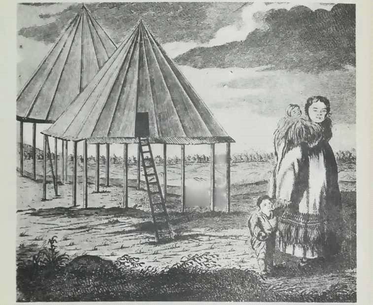 Летние жилища камчадалов. (Гравюра из книги Крашенинникова «Описание земли Камчатки»)