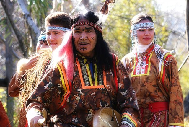 "Индейцы" Камчатки (в центре фото яркий представитель ительменов балетмейстер, заслуженный работник культуры РФ, лауреат Правительственной премии «Душа России» Жирков Борис Александрович)