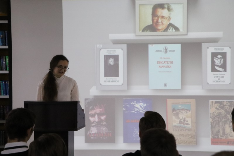 На встречу со студентами пришла вдова писателя Алиса Григорьевна Гропянова - ветеран труда, педагог, отличник народного просвещения РСФСР, заслуженный учитель РСФСР. Она показала рукописи писателя, и портреты Витуса Беринга, которые всю жизнь собирал Евгений Валерианович. В ходе мероприятия она также поделилась своими воспоминаниями о личной жизни и творчестве супруга.