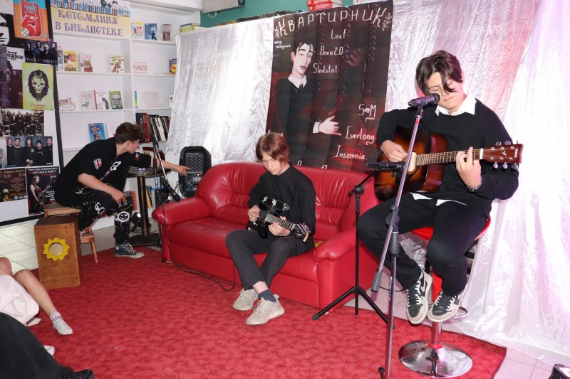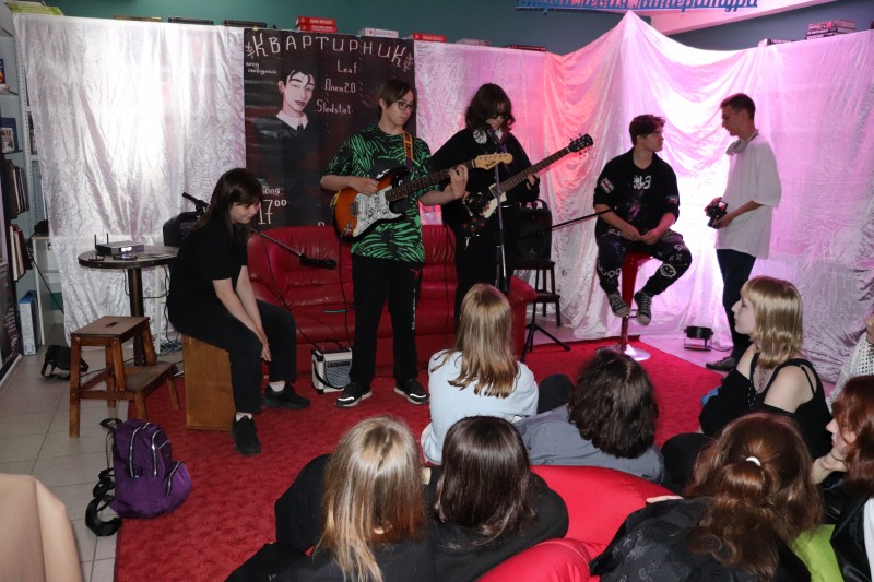 Открыл квартирник дуэт «Для баланса Вселенной». Авторы-исполнители - Захар Доценко и Конов Михаил, которые исполнили песню «Мой дом». Ребятам по 14 лет, они являются активными участники библиотечного клуба «Аллегро», где на творческих встречах обмениваются опытом и совершенствуют свое мастерство.