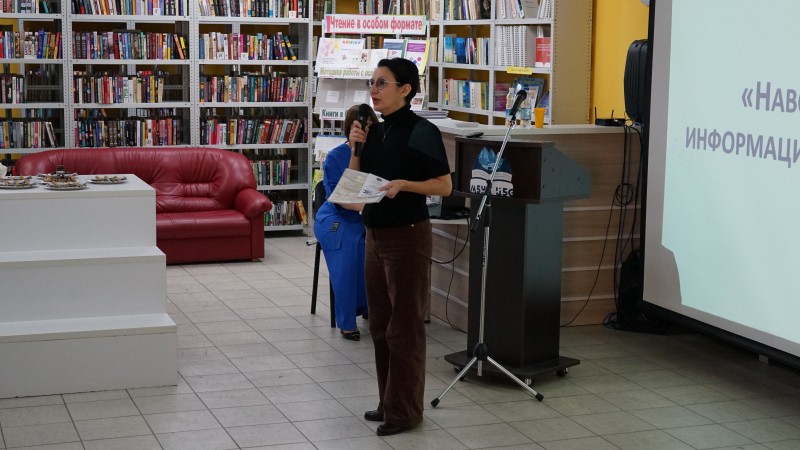 Заведующий сектором по работе с пользователями с ограниченными возможностями здоровья информационно-библиотечного центра «Доступный город» Антонина Александровна Сучкова, она же и ведущая семинара, рассказала о пособии «Чтение без границ». В нем собрана информация о специализированных издания, имеющихся в фонде библиотеки: о книгах со шрифтом Брайля, крупно шрифтовых и аудиокнигах как для детской аудитории, так и для взрослых. Здесь же отображен список методических пособий, в которых содержатся рекомендации и практический опыт, применяемые в работе с особой аудиторией в образовательных учреждениях и библиотечном сообществе. В приложении приведены стандартные правила этикета при обращении с различными группами инвалидов. Пособие, рассчитанное как на людей с ограниченными возможностями здоровья, так и для специалистов, которые работают с ними, получили все участники семинара.