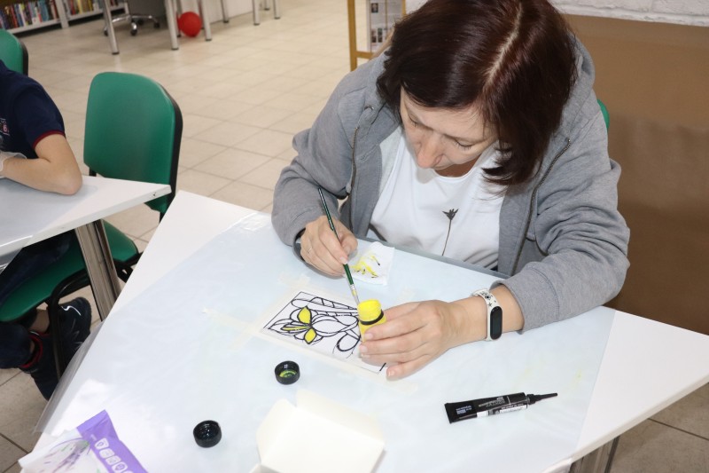 Создание средневековых витражей тоже оказалось весьма интересным занятием. Это не только художественный процесс, но и погружение в историю, на несколько столетий назад. Конечно, участники мастер-класса не отбирали стекла, не нарезали их, не соединяли свинцом или оловом, как бы сделали это мастера средневековья. Но процесс рисования на стекле акриловыми красками оказался настолько увлекательным, что к юным мастерам присоединились и взрослые.
