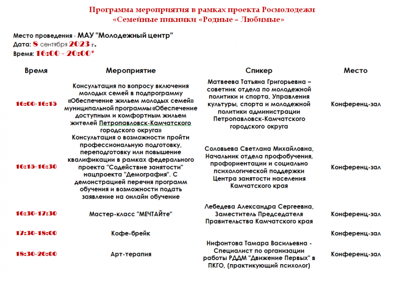 Детей и родителей приглашают принять участие в семейной интерактивно-просветительской программе "Родные - Любимые". В ее рамках предусмотрены встречи с педагогами и психологами, интересные мастер-классы, консультации от специалистов по вопросам поддержки молодых семей. И взрослым, и юным горожанам скучать не придется. Приходите и убедитесь сами.