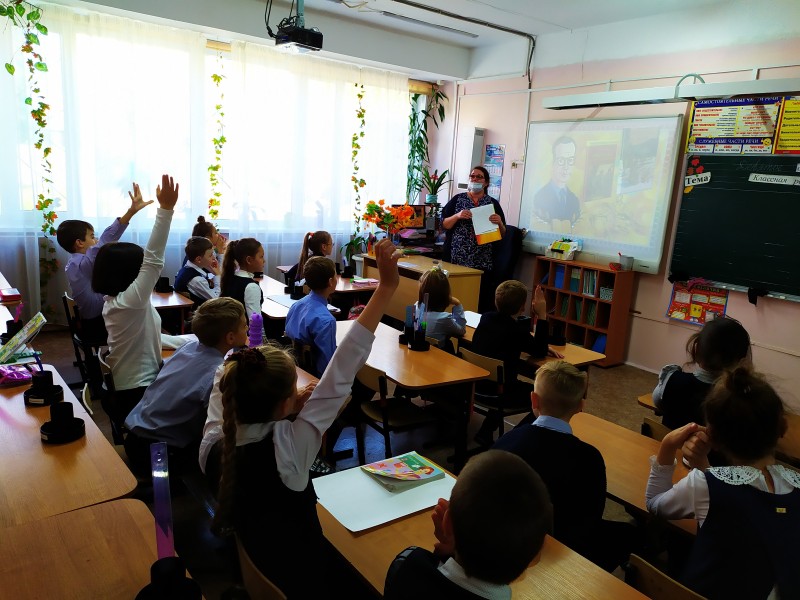 Далее школьники приняли участие в викторине и сыграли в игру «Кто там?» по произведению Э. Успенского «Дядя Фёдор, пёс и кот». А затем просмотрели отрывки из мультипликационного фильма «Трое из Простоквашино» о самом известном почтальоне России.