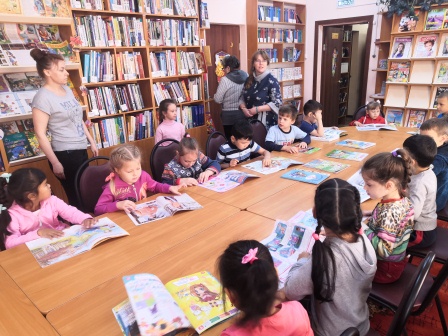 Далее ребята отправились в путешествие по читальному залу, где их вниманию были предоставлены разнообразные детские журналы, энциклопедии, иллюстрированные справочники для дошкольников. Воспитанники с удивлением узнали о книгах, которые знают ответы на самые странные и необычные вопросы - энциклопедиях. Также библиотекарь рассказала, какие книги есть в читальном зале и, что все они расставлены на книжных стеллажах по отделам: животные, космос, техника, история и другие.