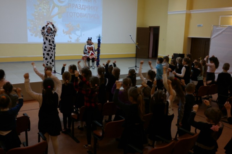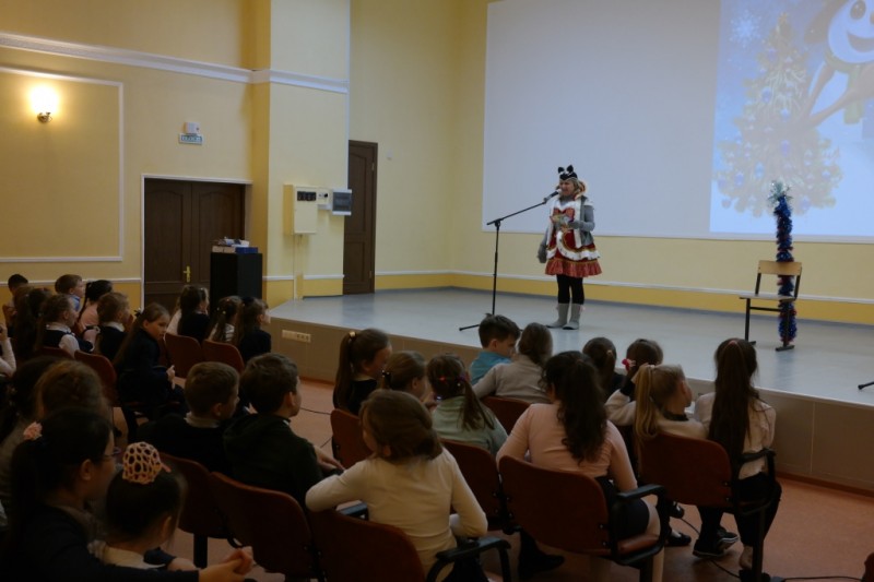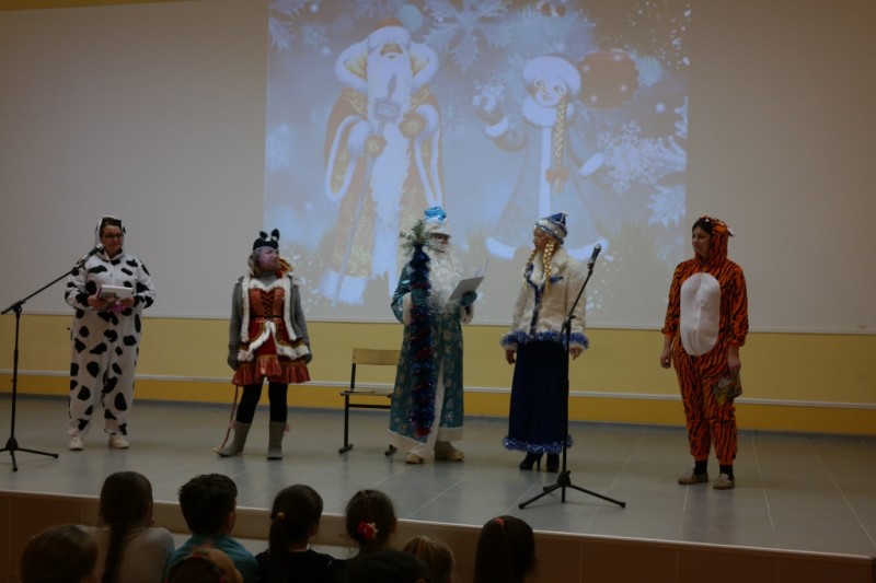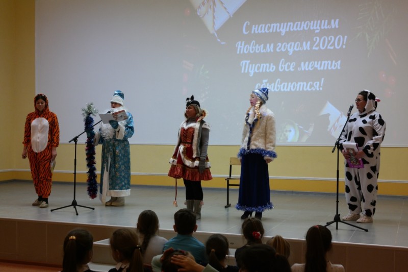 20 декабря в актовом зале средней школы № 45 состоялась премьера театрализованного представления «Принимайте, ребятишки, поздравления от мышки»! Праздник посетили 94 ученика начальных классов. Главным персонажем спектакля стала коварная Мышь - похитительница посоха Деда Мороза. Мышка с помощью колдовства надеялась стать талисманом не только наступающего 2020 года, но и сохранить за собой роль символа все последующие годы. В новогоднюю программу были включены подвижные игры, игры-танцы, которые проводили забавные животные: Озорная корова, Весёлый тигр, Непоседа-свинка и Умная собака. К приходу Деда Мороза и Снегурочки Мышь поняла, что справиться с волшебным посохом может только главный сказочный волшебник. Яркие костюмы героев, большое количество песен и весёлые конкурсы захватили внимание зрителей.