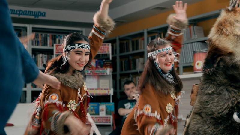 В Центральной библиотеке демонстрировались фильмы о коренных жителях края, прошла краеведческая викторина, а гвоздем программы стал танцевальный флешмоб "Давно так было в табуне".