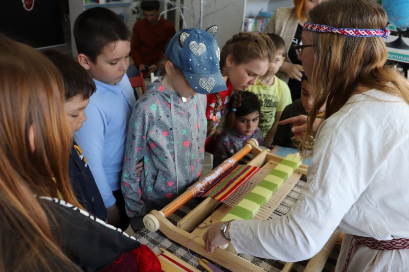 Креативная и талантливая Светлана Кондрашенкова дала урок славянского ручного ткачества и рассказала об особенностях и хитросплетенях нитей, которые в ловких руках мастериц превращались в волшебные рушники, скатерти и рубахи.