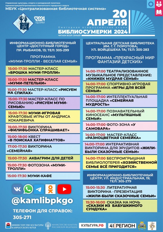 20 апреля с 15:00 стартуют детские Библиосумерки. В информационно-библиотечном центре на улице Индустриальной, 19 юных читателей и их родителей ждет увлекательная сказочная викторина и сказка из бабушкиного сундука, которую расскажет неподражаемая Валентина Батуринец – худрук Дома культуры «СРВ».