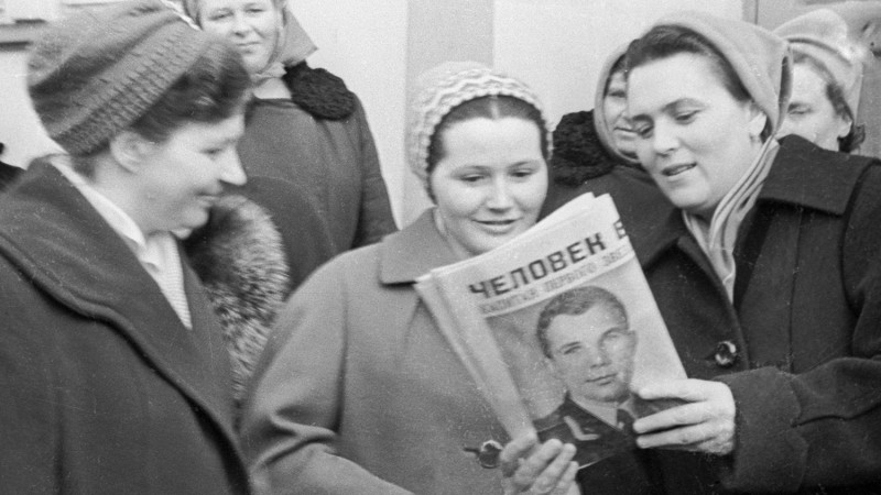 12 апреля эфир взорвали сообщения «Человек в Космосе!». Люди выходили на улицы, смотрели в небо, раскупали газеты с последними сообщениями. На улицах останавливалось автомобильное движение. Новости пестрили заголовками «Россия выигрывает соревнования», «Корабль Восток несёт майора Гагарина в историю». Полёт Гагарина называли эпохальным достижением человечества.