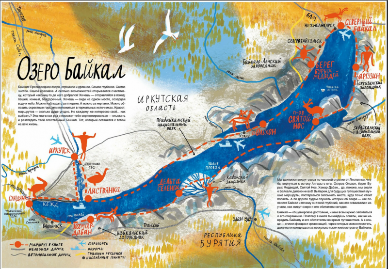 «Невероятная книга! Путеводитель с изумительнейшими рисунками, с которым у вас нет шансов не полюбить Байкал! Уникальное издание!»