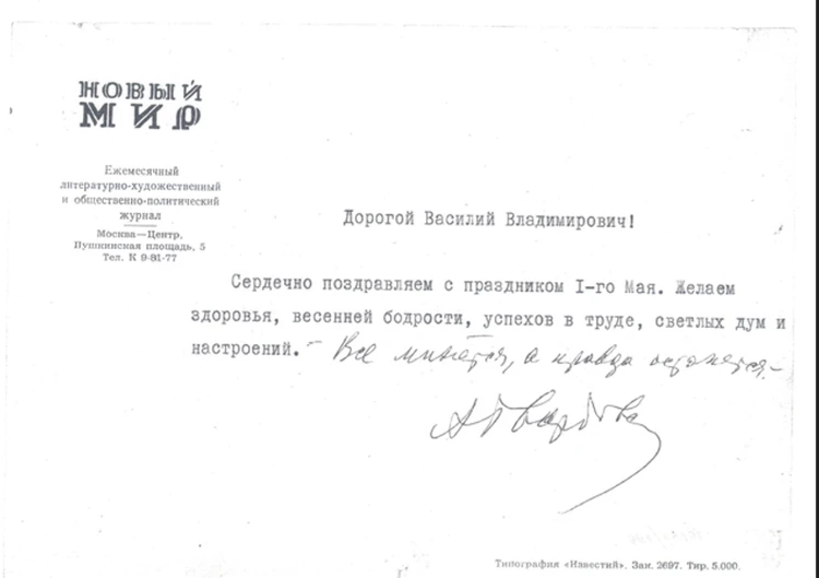 | Фрагмент черновой редакции «Мёртвым не баліць». Архив Василя Быкова (Гродно) | В апреле 1966, когда кампания травли автора «Мёртвым не баліць» уже набрала обороты, Александр Твардовский прислал Быкову письмо со словами, ставшими пророческими «Все минется, а правда останется". Хранится в Государственном музее истории белорусской литературы. |