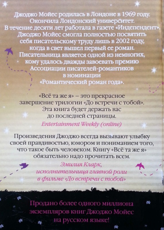 Является продолжением: "До встречи с тобой" ; "После тебя". - Автор дважды лауреат премии Ассоциации писателей-романтиков в номинации "Романтический роман года".