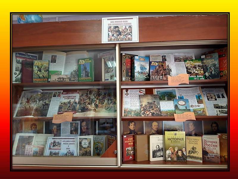 Библиотека № 5 подготовила для вас книжную выставку «Бородинская битва – доблесть и слава» и виртуальный тематический обзор книг из серии «Сто великих…», посвященных войне 1812 года.
