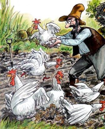 Петсон, его друг котенок Финдус и их куры мирно живут в маленькой шведской деревушке. Но однажды в деревне появилась лиса. И стала таскать кур. Сосед Густавсон решил пристрелить лису. О том, как Петсон и Финдус спасали кур от лисы, а лису от соседа, рассказывается в этой презабавной книжке.
