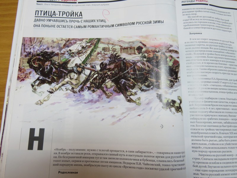 В рубрике Легенды Родины кандидат исторических наук Ольга Чагадаева рассказывает историю самого романтичного символа русской зимы – Птицы-тройки. В допаровозную и доавтомобильную эру бойкая тройка была самым скоростным транспортом в мире. Более быстрого способа доставки грузов, срочных сообщений и пассажиров не существовало.